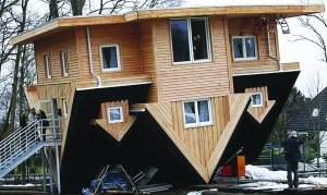 这栋房屋高8米,建造在一家动物园内,里面的厨房、浴室、起居室以及卧室中的东西,都与正常房间的摆设相反,所有用具几乎都是挂在头顶上的,幸好这栋颠倒建筑不是用来住人的。